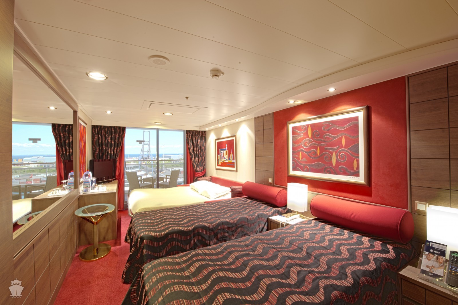 Suite s balkónom: cca31m², kajuta s manželskou posteľou (na požiadanie 2 oddelené postele) a rozkladacia pohovka. Klimatizácia, kúpeľňa s vaňou, toaletný stolík, priestorná skriňa, interaktívna TV, telefón, minibar, sejf, sušič na vlasy. Balkón so stolíkom a stoličkami. Internetové pripojenie (za poplatok).