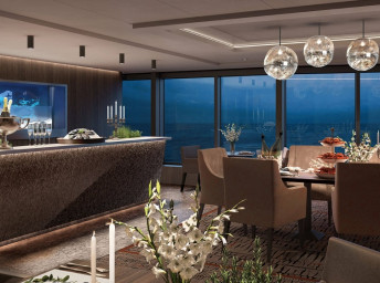 Apartmán s 1 alebo 2 miestnosťami na 7. a 8. palube. Obývacia časť s Tv, jedálenský stôl, kávovar, minibar a balkón alebo neotvárateľné panoramatické okno.