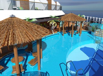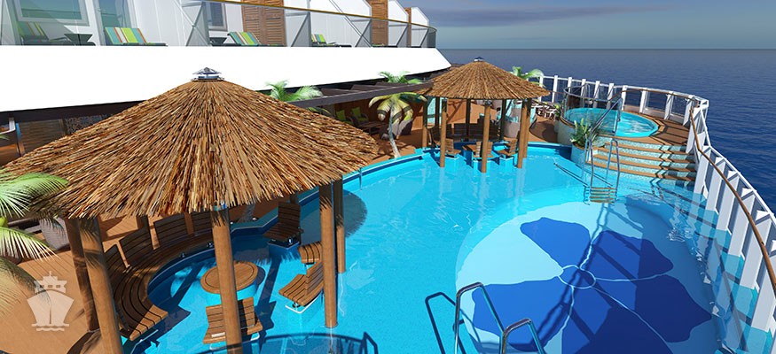 - SeaSide Theater s 25m² LED obrazovkou pre tých, ktorí chcú sledovať filmy priamo z bazéna