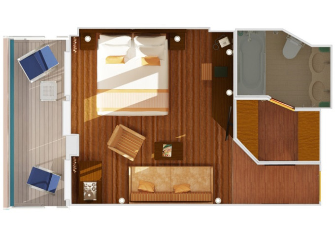 GS - Grand Suite 32 m² + balkón 8 m². 7. paluba stred. Max 4 osoby. Výhody Suite. 1 782 € 891 € za osobu