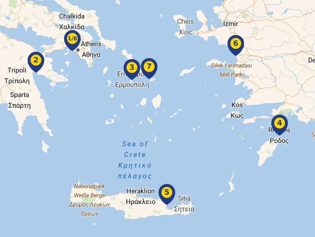Spoznajte miesta, kde Vaša loď počas plavby zakotví! Každá zastávka je označená číslom, ktoré zodpovedá jej pozícii na mape, aby ste mohli jednoducho sledovať celú trasu. Stačí kliknúť na vybranú destináciu a zistíte viac o každej z nich. Pre ešte lepší prehľad si môžete celý program plavby prezrieť priamo na mape.
