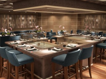 - Kaiseki - japonská reštaurácia, inšpirovaná 5 základnými prvkami japonskej kuchyne, so zreteľom na ekvilíbrium yin a yang. Dôraz na bezchybnú prípravu a nádhernú prezentáciu každého chodu. presentation. Počas dňa výber sushi, sashimi a iné raw ázijské jedlá, večer aj teppanyaki. Dress code: neformálny. Príplatok $ 60. Nutná rezervácia.