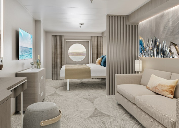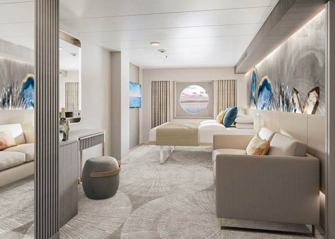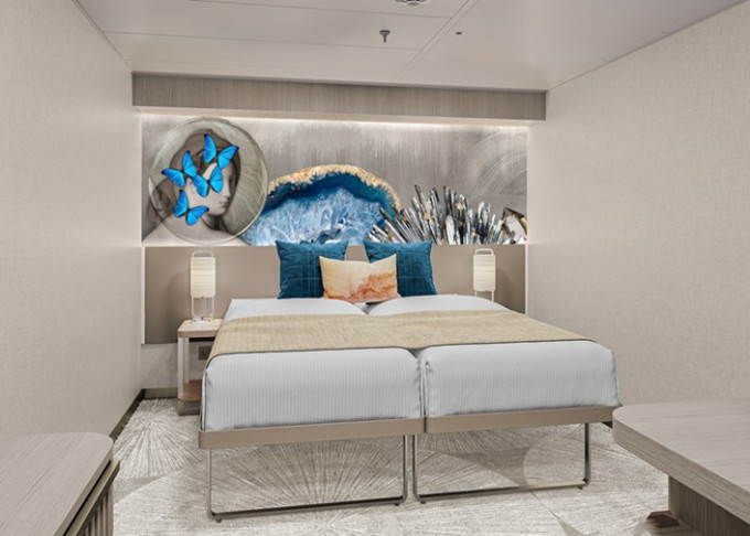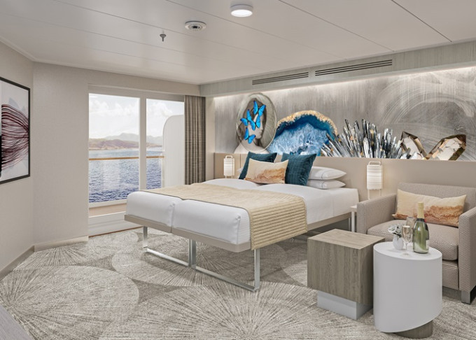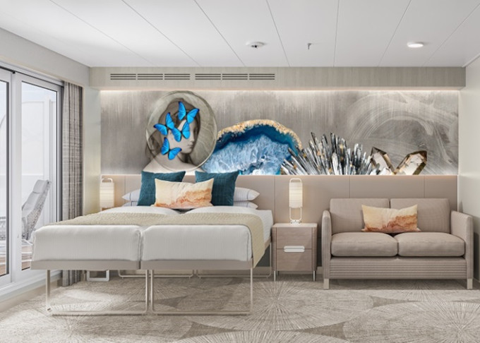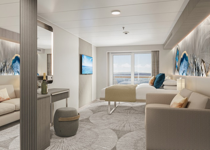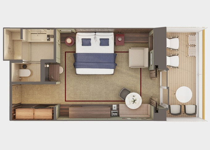 SI - Suite s veľkým balkónom Aft-Facing 41 m² / balkón 18 m². 9. paluba - vzadu. Max 2 osoby. Výhody Suite. | 8 240 € 4 120 € za osobu |