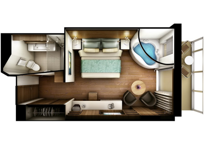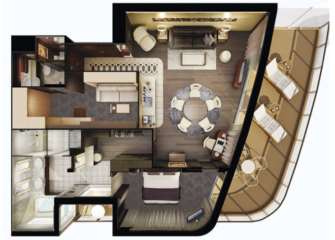 H3 - The Haven Deluxe Owner's Suite 53 m² / balkón 8 m². 17,18. paluba - vpredu. Max 4 osoby. Výhody The Haven. | 11 430 € 5 715 € za osobu |