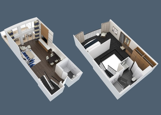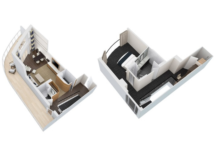 SL - Sky Loft Suite s balkónom 62 m² + balkón 17 m². 2-podlažný apartmán. Max 4 osoby. Výhody Royal Suite Sky Class. | 5 168 € 1 292 € za osobu |