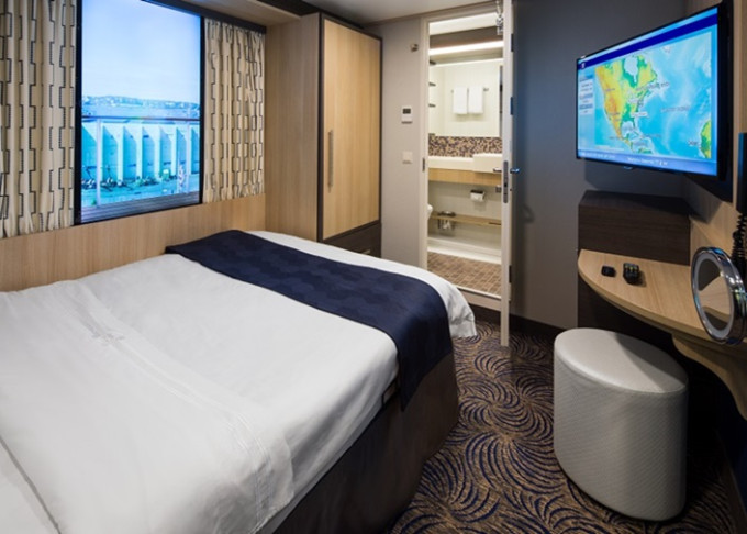 2U - Vnútorná kajuta s virtuálnym balkónom 15 m². Obrazovka veľkosti balkónových dverí s premietaným výhľadom. Centrálne umiestnenie. Max 2 osoby. | 1 724 € 431 € za osobu |
