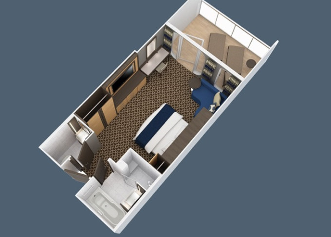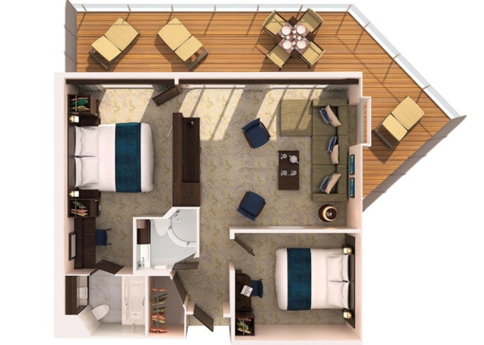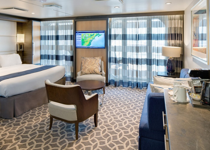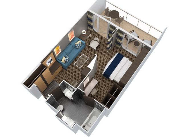 J3 - Junior Suite s balkónom 25 m² + balkón 7,5 m². Max 4-5 osôb. Výhody Royal Suite Sea Class. | 2 886 € 1 443 € za osobu |