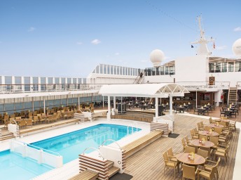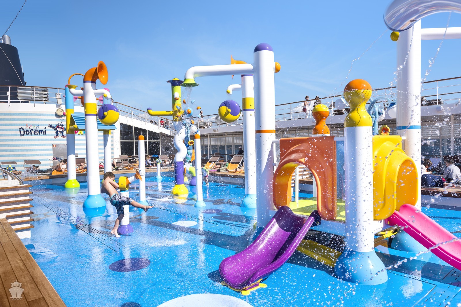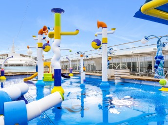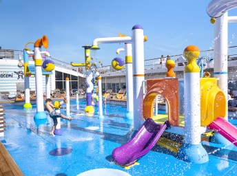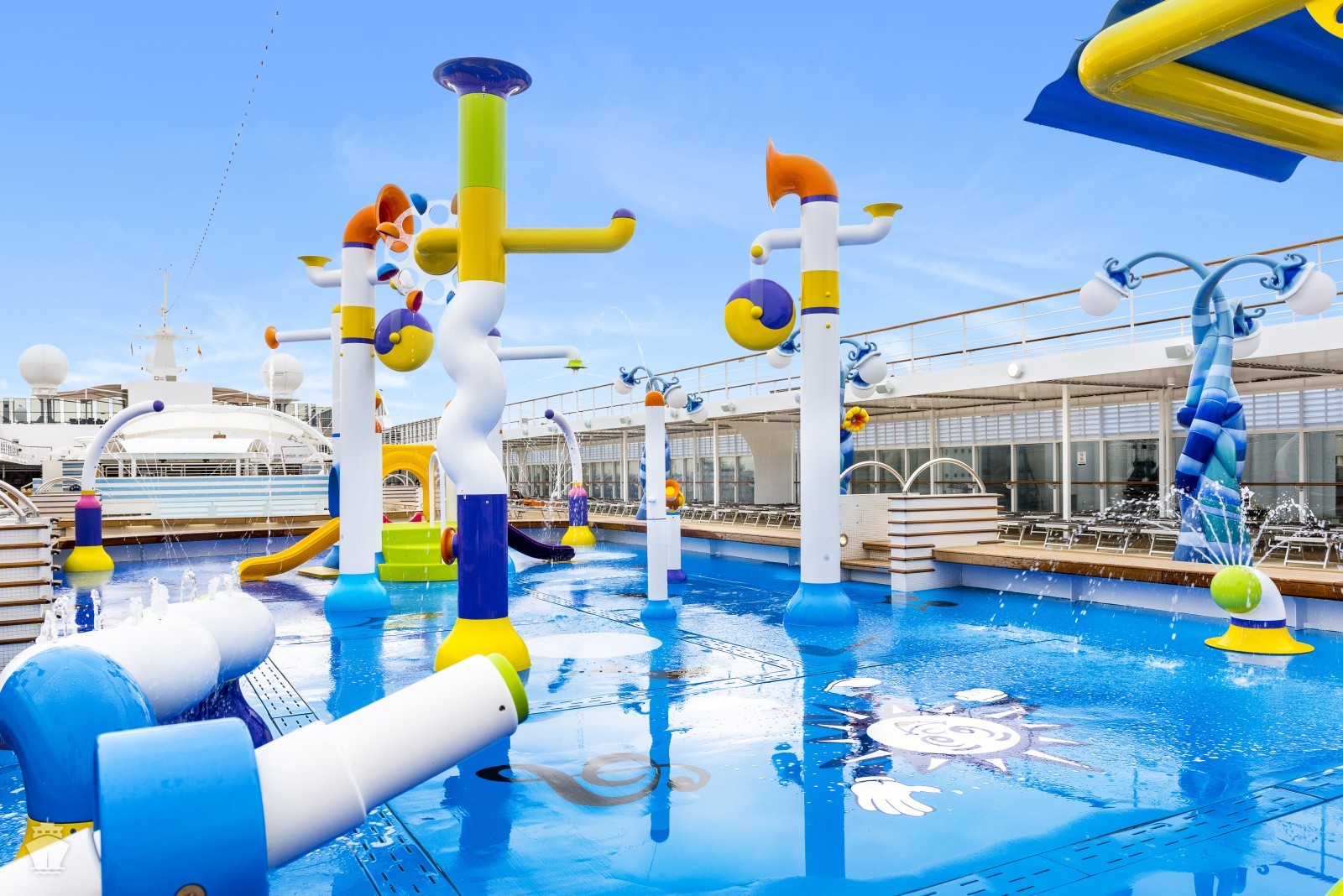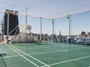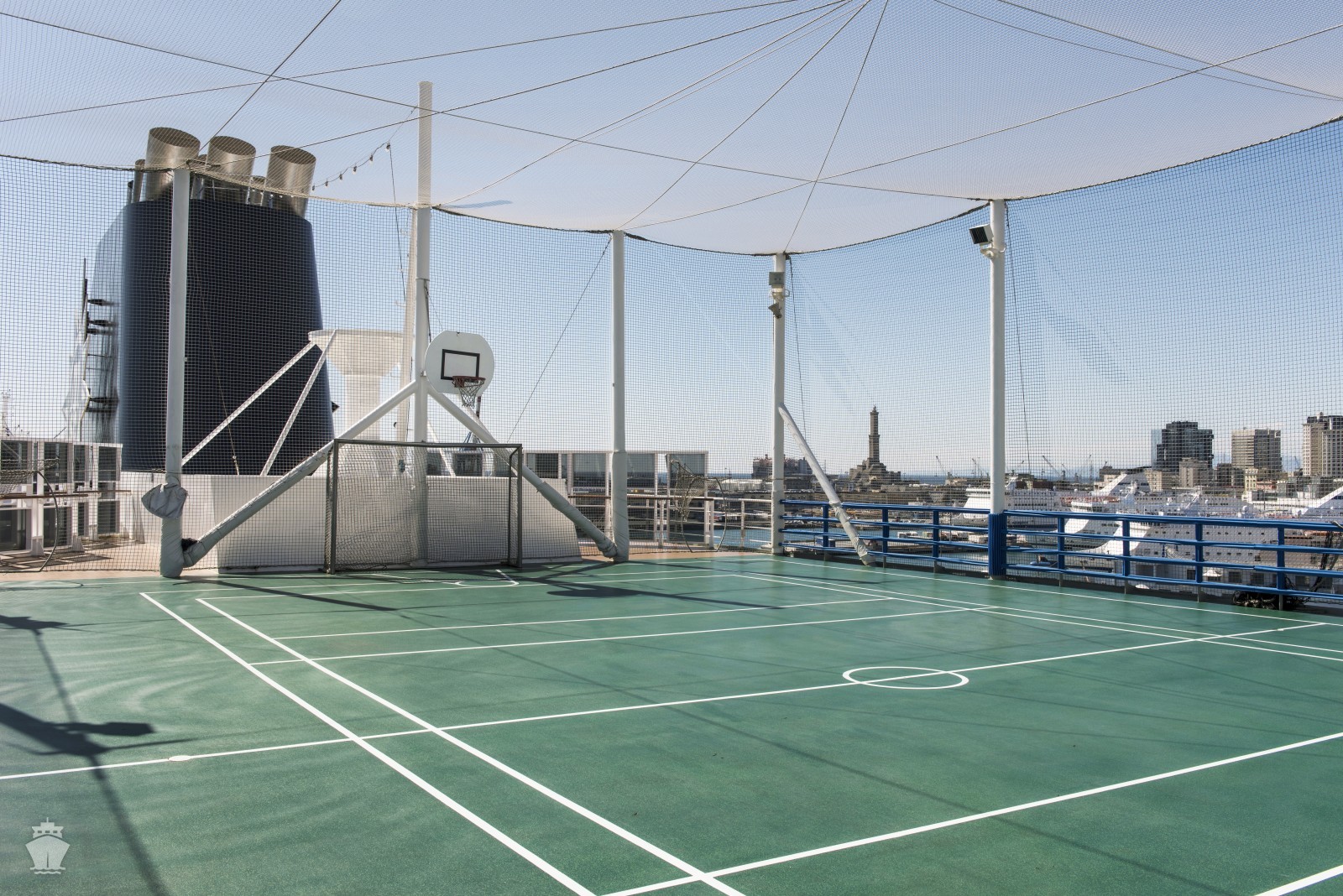 - Športové aktivity na otvorených palubách (jogging, basketbal, futbal, tenis), bazény a ležadlá
