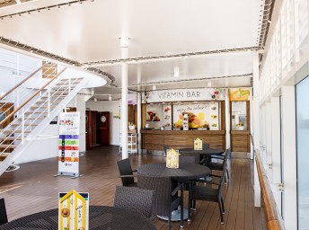 Cafe del Mare- (11. paluba) oproti bufetovej reštaurácie (dodatočné miesta na sedenie) s kapacitou 466 hostí.