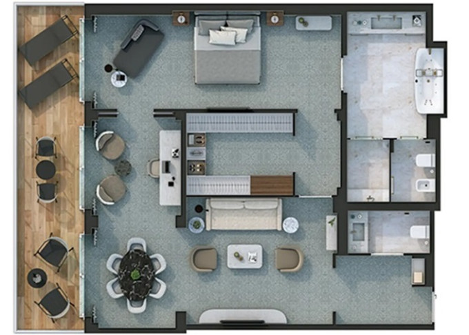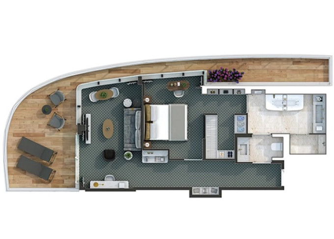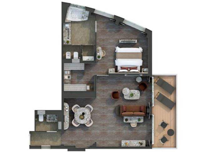 O1 - Owner's 1 Suite 98 m² (vrátane balkóna 16 m²). Spálňa, oddelená obývacia a jedálenská časť, kúpeľňa s vírivkou. 8. paluba stred. Max 3 osoby. 76 600 € 76 600 € za osobu