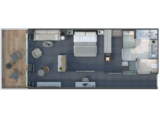 MS - Master Suite 67-77 m² (vrátane terasy 22-32 m²), Spálňa, oddelená obývacia a jedálenská časť. 6. až 9. paluba vzadu. Max 3 osoby. 59 200 € 29 600 € za osobu