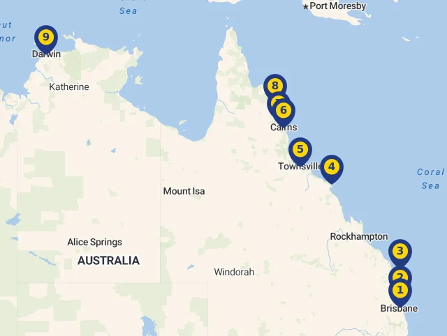 Spoznajte miesta, kde Vaša loď počas plavby zakotví! Každá zastávka je označená číslom, ktoré zodpovedá jej pozícii na mape, aby ste mohli jednoducho sledovať celú trasu. Stačí kliknúť na vybranú destináciu a zistíte viac o každej z nich. Pre ešte lepší prehľad si môžete celý program plavby prezrieť priamo na mape.
