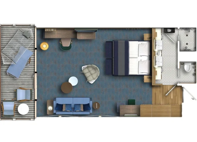 | SPNO - Panorama Suite 73-77 m² + balkón 31-36 m² so stolom, ležadlami a hojdacou sieťou. 2 spálne a 2 kúpeľne. 6,9,10. paluba. Max 6 osoby. Výhody Suite. | 6 896 € 1 724 € za osobu | ||