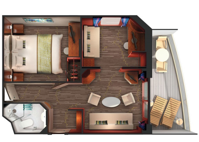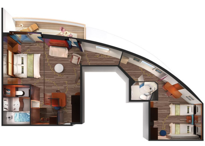 S4 - Deluxe Family Suite od 56 m² / balkón 9 m². 9. paluba - vpredu. Max 5 osôb. Výhody Suite. | 14 226 € 7 113 € za osobu |